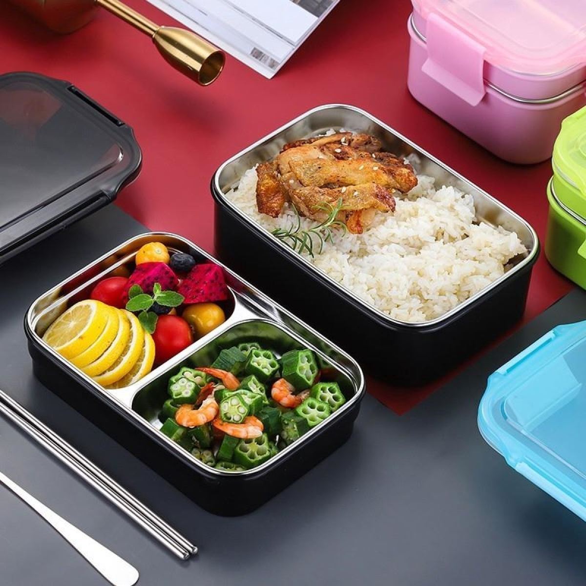 Штабелируемый контейнер из нержавеющей стали 304, коробка для ланча/закусок, 2-Я