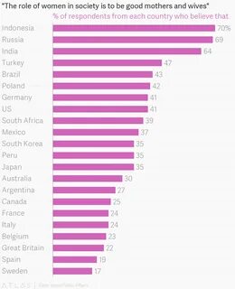 Majority of Indonesians, Russians and Indians think that the role of women in so